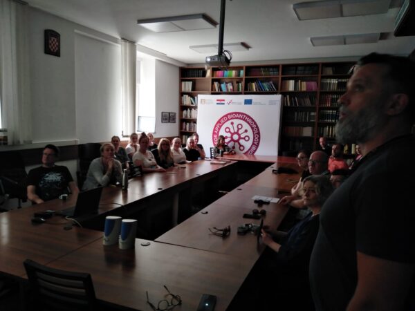 On Monday, June 10, 2024, a public presentation of the research project of the Croatian Science Foundation IP-2022-10-8558 “Bones, Isotopes and Genes: Health, Nutrition and Ancestry of the Roman Period Inhabitants of Croatia” took place in the library of the Institute for Anthropological Research. In front of a large audience, the project was presented by the PI, Dr. Mario Novak, and a shorter presentation entitled “Maternal-Infant Health in Roman Tragurium: Bioarchaeological Investigations of the Very Young” was also given by the project collaborator, Prof. Anna Osterholtz from Mississippi State University, USA.